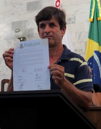 O prefeito fez questão de elogiar a postura compreensiva do presidente do Sindicato dos Servidores Públicos Municipais, Valdiney Delmaschio Alves, ao mesmo tempo em que criticou a ala do funcionalismo que cobrava uma atitude mais enérgica do sindicato ante o atraso no pagamento dos salários: “Fico feliz por ter contado com a compreensão de quase a totalidade de nossos servidores. Infelizmente, existem apenas uns poucos que tentam se valer da situação para tirar proveito político deturpando a realidade. Estes tentam criar alguma mobilização, transformar os fatos, mas todo mundo sabe distinguir quem são essas pessoas. Não temos nada a esconder dos servidores ou de quem quer que seja. Fizemos tudo com transparência e com o acompanhamento do presidente do sindicato, que acompanhou dia a dia todas as projeções da Secretaria da Fazenda e os repasses feitos pelo governo. A educação, de onde veio a maioria dos protestos, foi a mais beneficiada em nosso governo. Mesmo sem os recursos do FUNDEB para pagar aos servidores, que totalizam 14 milhões de reais, para não deixar os professores sem pagamento e os alunos desassistidos, tiramos recursos do caixa do município, ficamos sem fazer obras e investir em outras áreas. Caso contrário, os profissionais da educação já estariam com três folhas de pagamento em atraso.”