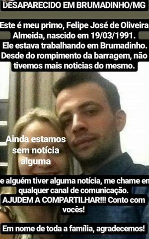 Que a dor não nos silencie e que cobremos da VALE o mínimo de respeito com as famílias que assim como o meu tio, agora olham para toda aquela lama, com um só pensamento: Onde está o Felipe ?Porque infelizmente, naquele lamaçal existem também Joãos e Marias que sofrem a ausência de seus familiares. Estamos todos angustiados e sem nenhuma resposta.