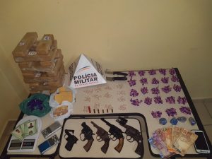 PM apreende grande quantidade de drogas e armas com suspeitos de tráfico