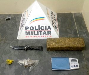 • Ponto 02 –  apreensão de 01 barra de maconha, 01 bucha, 01 barra menor e 01 balança precisão, 01 autor preso.