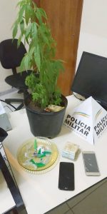 Na casa da funcionária da empresa, a Polícia Militar localizou um pé de maconha com aproximadamente 55 cm de altura. Ela alegou que consumia e fornecia para amigos.