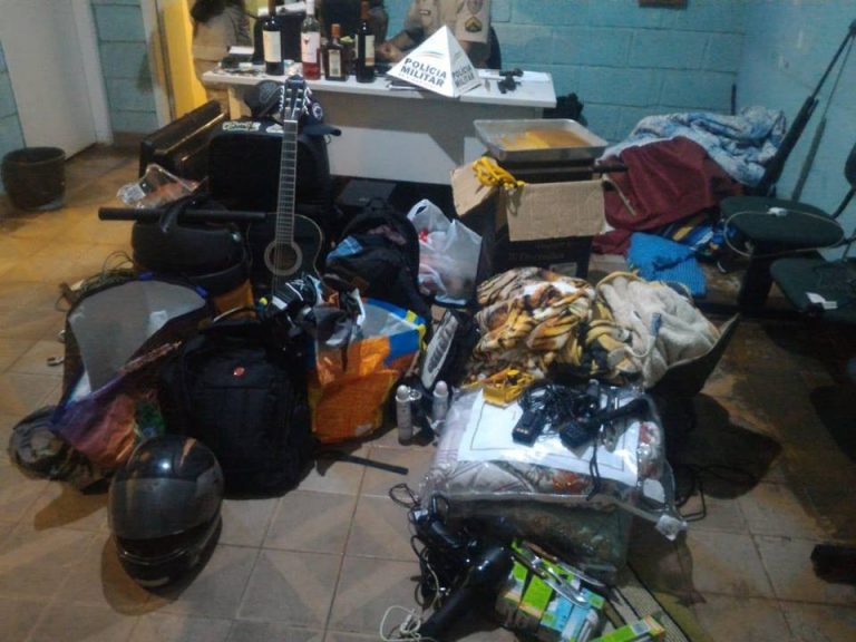 Os ladrões roubaram diversos objetos e utensílios domésticos. Para transportar que roubaram eles usaram a caminhonete Fiat/Strada que também foi roubada do sítio.