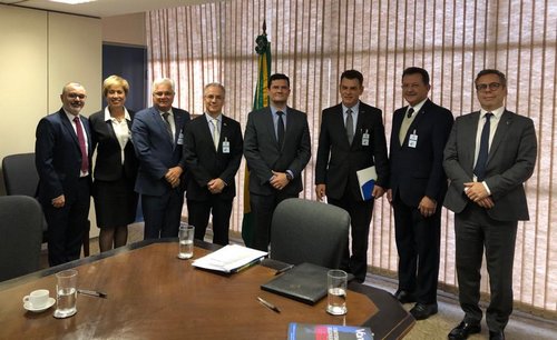O presidente da CNDL, José César da Costa, acompanhado dos diretores da entidade e presidentes da FCDL-SP, Maurício Stainoff, da FCDL-MG, Frank Sinatra Santos Chaves, e da CDL-DF, José Carlos Magalhães Pinto, se reuniu na tarde desta segunda-feira (5) com o ministro da Justiça e Segurança Pública, Sergio Moro, para discutir o comércio ilegal e o combate ao contrabando.