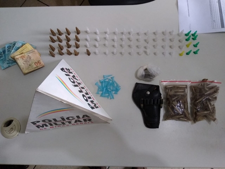 Foram apreendidos quatro veículos, uma arma de fogo, munições, pedras de crack, buchas de maconha e vários invólucros utilizados para embalar drogas, além de balança de precisão, cadernos contendo anotações relativas ao tráfico ilícito de drogas, aparelhos celulares e a quantia de R$ 5.035,00 (cinco mil e trinta e cinco reais) em espécie.