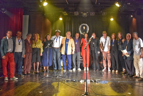 Homenageados com a Medalha José de Souza Salgado: Ruth Assis, secretária-adjunta de Cultura, representando o secretário Estadual de Cultura, Marcelo Matte; Cristina Lúcia de Castro Shirmer, representando a presidente da Fundação Clóvis Salgado, Eliane Parreiras; Débora Raissa, representando a presidente do IEPHA-MG, Michele Arroyo; Alcione Meirelles, representando a Família Meirelles; Raquel Cristina, representando a Família Salgado; Michelle Chaves Nogueira de Rezende Rosa, representando o músico e colecionador Max Rosa; Violeiro Chico Lobo, Violeiro Wilson Dias, Nonô do Mato Dentro, representando a Folia Comunitária Luz de Minas; Historiador Carlos Felipe Horta, Mirian Palhares, representando a Secretaria Municipal de Cultura de Congonhas e o artista Plástico Luciomar de Jesus