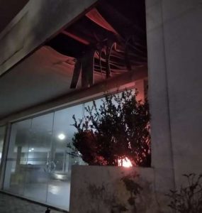 Embora o incêndio tenha ocorrido do lado exterior do estabelecimento foi observado que o incêndio atingiu parte do forro de PVC da marquise do prédio, resultando em danos ao forro e também deixando a vidraça do prédio impregnada de fuligem.