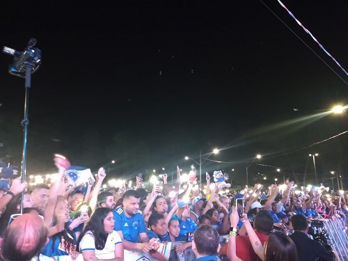 Claro, o momento que todos esperavam aconteceu por volta das 20h30: Ronaldo subiu ao palco do evento, aos sons de “Pula, sai do chão, é a tropa do gordão”, nosso patrão até cantou este grito bem humorado junto com a torcida. Cheio de carisma, Ronaldo agradeceu à cidade por todo engajamento nas duas passagens da caravana por Lafaiete e a gente respondeu cantando ainda mais alto. Foram cerca de 30 minutos, em que aproximadamente dez mil lafaietenses ouviram do patrão o planejamento para que o nosso clube se fortaleça nos próximos.
