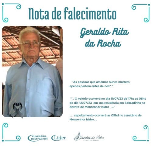 Nota de Falecimento – Geraldo Rita da Rocha