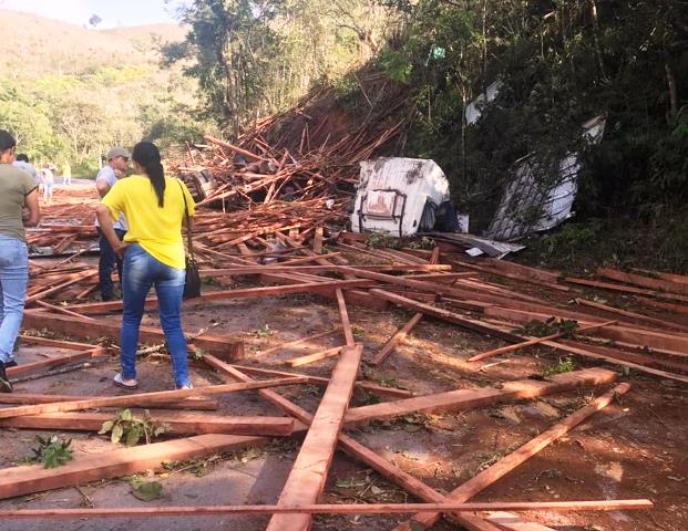 Os  bombeiros militares de Conselheiro Lafaiete foram acionados para aa ocorrência do acidente na estrada que liga Lafaiete e Itaverava. Segundo solicitação, o motorista estava preso na valeta da rodovia, debaixo de muitas madeiras, pertencentes à carga do caminhão.