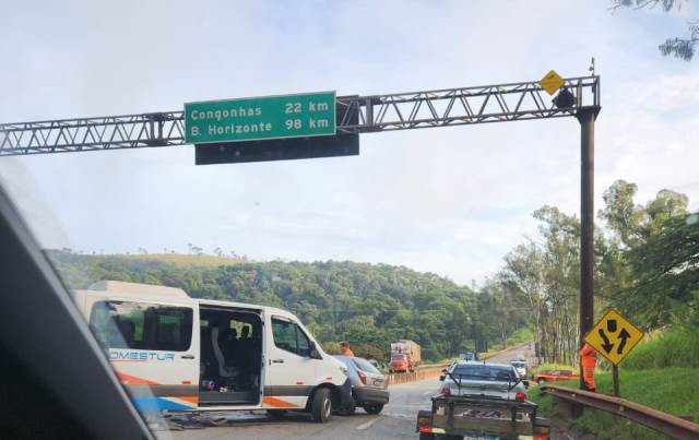 Por volta das 7h30 uma colisão ocorreu próximo à entrada do bairro Paulo VI em Lafaiete, no km 633, envolvendo uma Van e um Celta. Houve interdição parcial nos dois sentidos, gerando lentidão no tráfego de veículos.