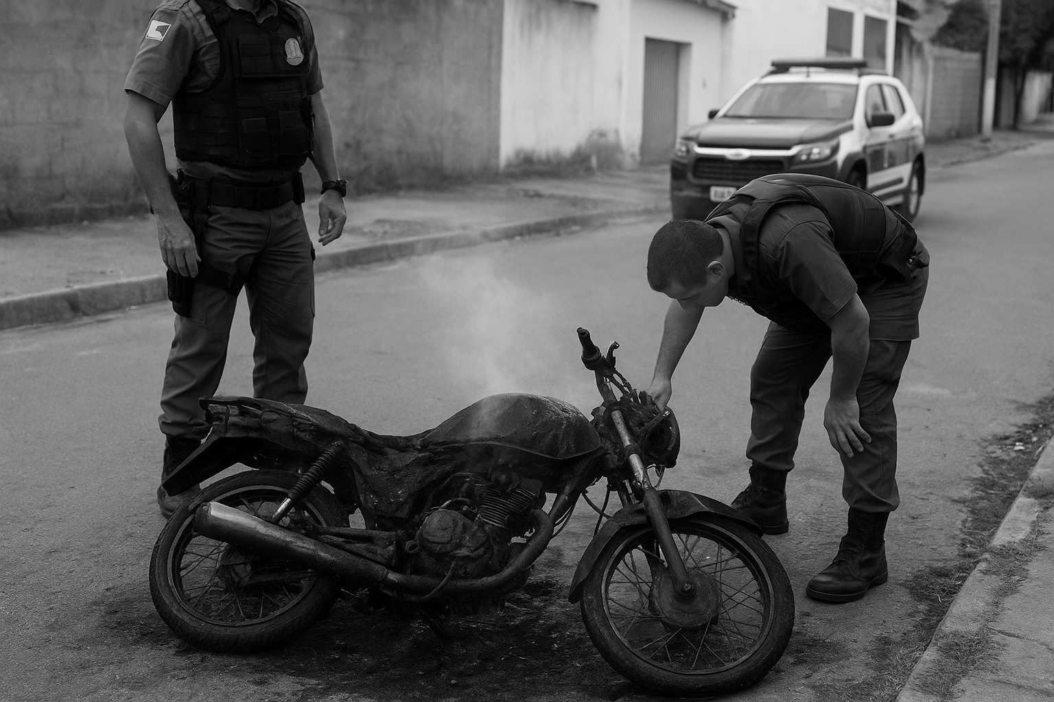 Na tarde de segunda-feira (29/09), por volta das 13h45, uma motocicleta Honda CG 125 Fan KS foi encontrada incendiada em uma rua do bairro Residencial Lenheiro, em São João del-Rei.
