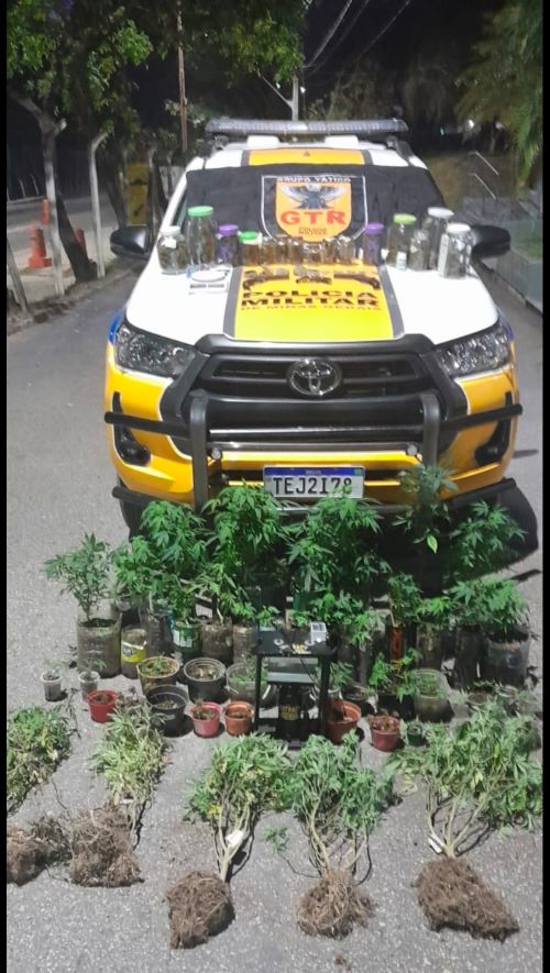 Ao perceber a aproximação policial, o suspeito tentou fugir, mas foi contido e abordado. As buscas resultaram na apreensão de 27 pés de maconha, 24 mudas da planta, 16 potes de skunk, sete bolas de haxixe, cinco pacotes de sementes, cinco porções de maconha prensada e três armas de fogo do tipo garrucha e pistoletes, todas sem documentação.