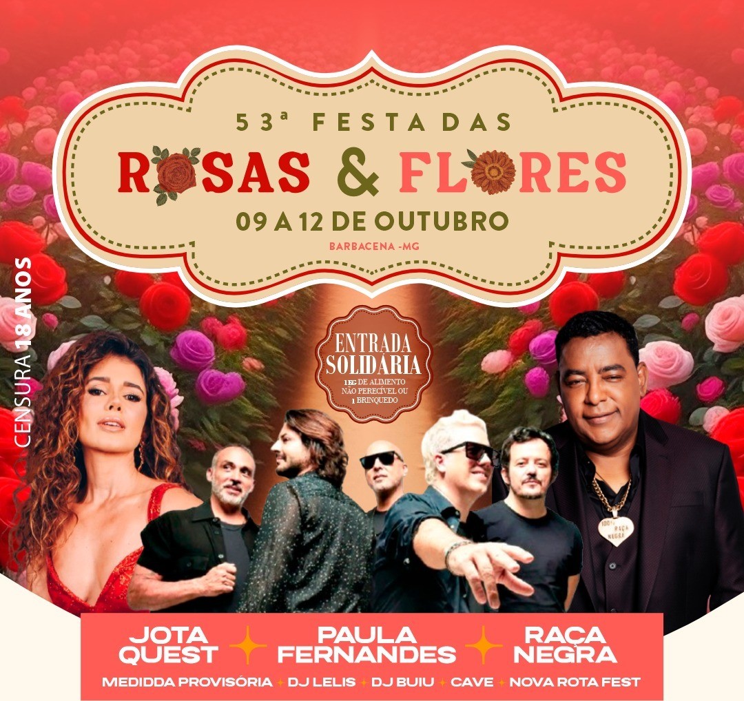 A cidade de Barbacena se prepara para viver mais uma edição da tradicional Festa das Rosas e Flores, que começa nesta quinta-feira (09/10) e segue até domingo (12/10), no Parque de Exposições Senador Bias Fortes. O evento, um dos mais esperados da região, une entretenimento, cultura e solidariedade em uma programação diversificada.
