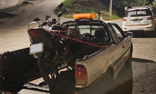 A abordagem foi realizada no entroncamento dos bairros Novo Horizonte e Santa Luzia. Com os suspeitos, um homem de 26 anos e uma mulher de 28, foram apreendidos dois celulares, dois capacetes e a motocicleta utilizada na tentativa de fuga.