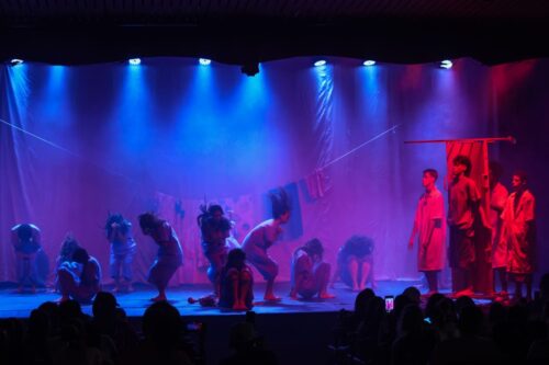 Foi impossível entrar no teatro como quem entra em um lugar comum. O espaço estava cheio. O som que gelava a respiração dizia mais que qualquer lotação. Antes mesmo da plateia encontrar a própria cadeira, a cena havia começado. As escadas já contavam a história, nos corredores, nos cantos. Corpos espalhados, inquietos, olhares perdidos, vazios, passos trêmulos, errantes.