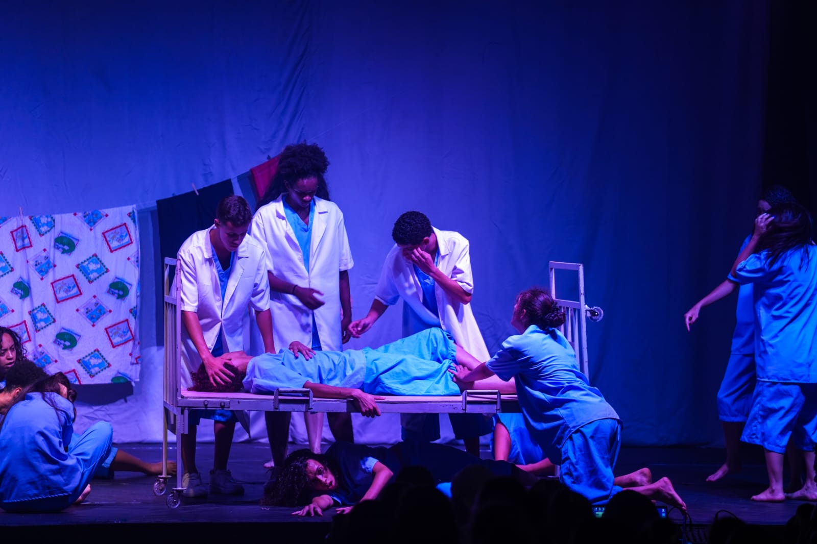 No espetáculo Holocausto Brasileiro Relatos de um Manicômio, a dança urbana virou grito contido. Falava dos manicômios. Falava de gente transformada em número, em sobra, em silêncio. Corpos no chão. Macas cruzando o palco. Outros eram contidos à força. Pacientes medicados, gestos repetidos. Rostos babados. Cabelos desgrenhados. Olhos aterrorizados. Nada era exagero. Tudo era denúncia. A história do Hospital Colônia de Barbacena ganhava forma, peso e carne diante dos olhos.