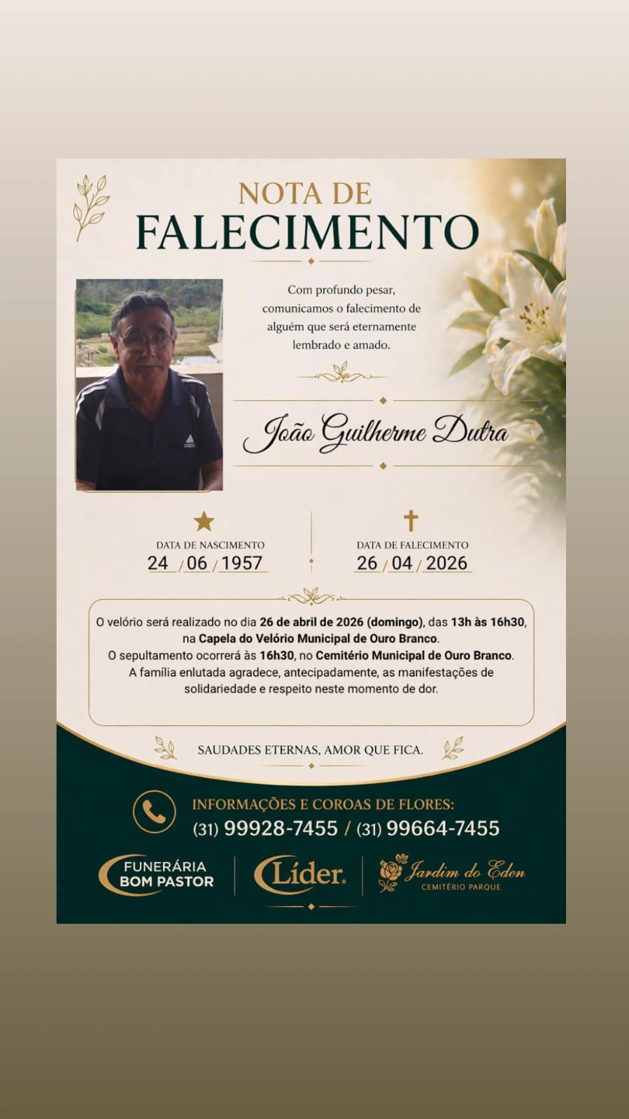 Nota de falecimento – João Guilherme Dutra